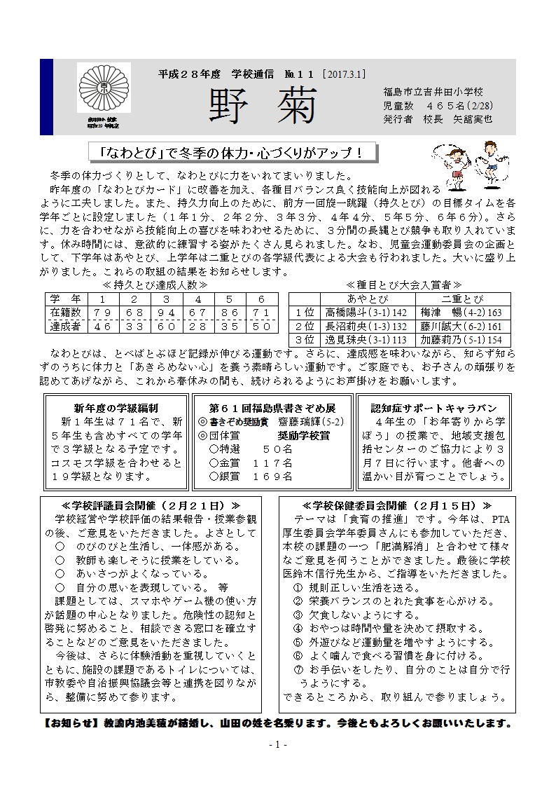 2月3日(金)6年生スケート、2月7日(火)1・2年生そりすべり、2月8日(水)4年生スケート、2月9日(木)3年生スケート、2月10日(金)スケートを実施しました。そり滑りは、猪苗代町の「ばんだいばんだい」へ、スケートは、磐梯熱海のスケートリンクへいってそれぞれ冬のスポーツを体験してきました。2年目ということもありみんな上手に滑っていました。