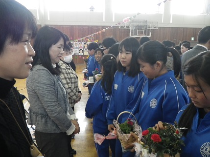 3月4日(金)に 6年生が先生方に「感謝の会」を体育館で開きました。6年生は、職員室へ先生方をお迎えに来て一緒に体育館へ入りました。児童代表の感謝の言葉と保護者代表の御礼の言葉をいただきました。アトラクションでは、1年生からの思い出の〇×クイズにみんなで答えました。先生方からの「贈る言葉」の歌のプレゼントがありました。心があたたかくなる時間となりました。