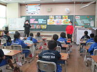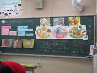 担任と栄養技師とのT・T(協力教授)でした。「食べ物の働きを知り、好き嫌いしないで食べることの大切さに気付かせること」がねらいの学級活動でした。