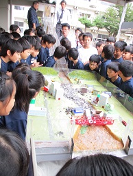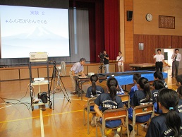 10月4日(火)防災教室を体育館で行いました。1年から3年生は、荒川の洪水や土石流の話を中心に聞きました。4年生から6年生は、火山についての話を聞きました。冬の融雪泥流と火山灰の危険性について実験を交えながら聞きました。全学年とも大きな土石流の実践装置で実験を見学したことで水の危険性を理解することができました。