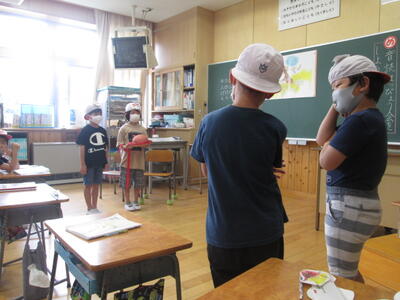 2021年7月7日 12時51分今朝、雨の中、段ボール箱を持参する4年生が目立ちました。図工で使うのだとか・・・