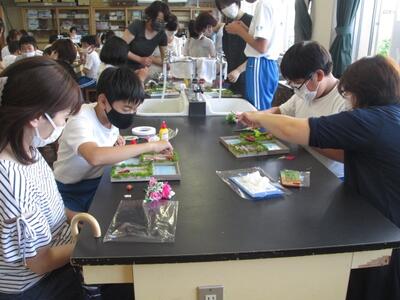 それに先立って、6年生ではPTA学年行事が行われました。お花の先生においでいただき、アーティフィシャルフラワーなどを使い、フォトフレーム作りを行いました。親子で相談しながら、世界に一つだけの写真立てを作ります。活動も作品も、ずっとずっと思い出に残りますね。大切にしてほしいと思います。