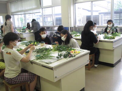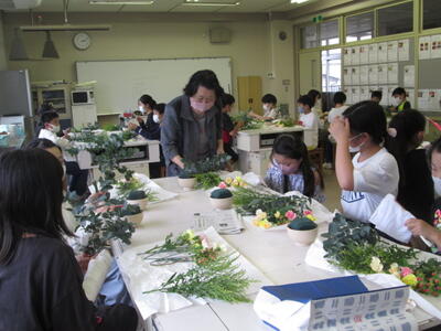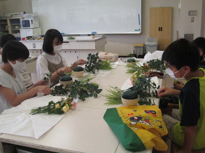 お花の先生をお呼びしてアレンジメントフラワーにチャレンジしました。