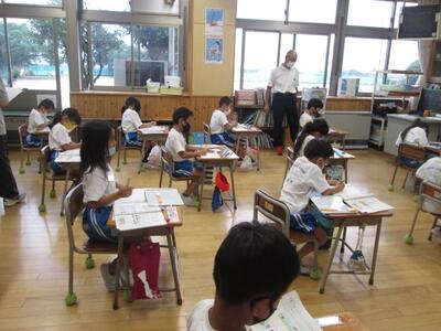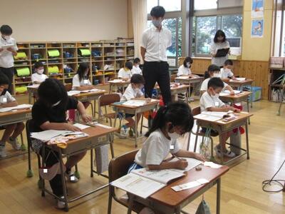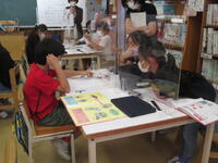 密になることを配慮し、ICT支援員の協力をいただき、隣の教室にリーモートで授業の様子を配信してもらい、図書室と行き来しながら参観できるようにしました。