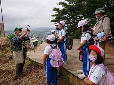 子供たちは、森の案内人さんからのお話を聞いたり、タブレットで福島市の様子を撮影したり、有意義な学習を行っているようです。