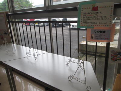 現在、先生方がくじ引きをして当たった学級へ読み聞かせに出かけています。今月は、どんな本が並ぶでしょう?楽しみです。