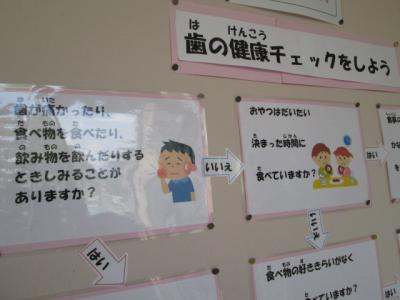 保健室前には「歯の健康をチェックしよう」のチャートが掲示されています。「すごい!」にゴールできるよう、一人一人が自分の「歯」のケアに努められると良いですね。