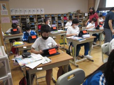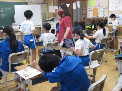 5年生は、社会科の時間、タブレットを使って沖縄県へズームイン!