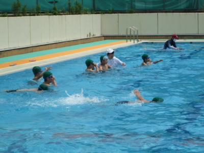 はじめは恐る恐るでしたが、徐々に「あっ、できるできる!」「去年もやったよ。」と昨年度までの学習を思い出し、潜ったり、泳いだりしました。今年の夏は、どこまで上達するかな? 一人ひとり、自分のめあてに向かって頑張ってほしいと思います。