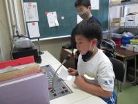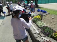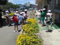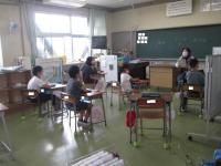 1年生はタブレットを使った写真撮影の方法について学習していました。教室で確かめた後、アサガオの写真や外の様子を撮影しました。ちょうど、ちょうちょが飛んできて、みんな追いかけましたが・・・
