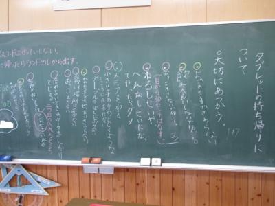最後の板書は、4年生が話し合ったタブレットの使い方です。