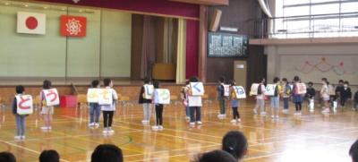 最後に、1年生から全校生へかわいいメッセージが届けられ、迎える会は無事に終了しました。