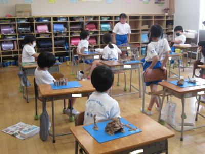 班に分かれて、宮畑遺跡の説明を聞いたり、遺跡の見学をしたりしました。28日の遠足で3・4年生が見てきた「しゃがむ土偶」はレプリカでしたが、じょーもぴあに展示されているのは本物です。