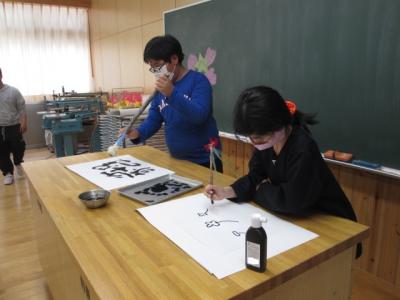 「これは湯野小が100歳のときの写真だよ。」と話すと、「ぼくのパパも湯野小だよ。」との返事。