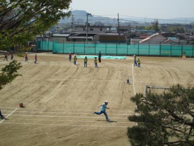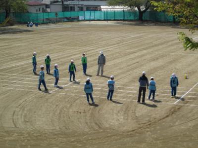 さっそく5年生がコースを使ってリレーの学習をしていました。