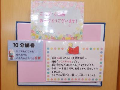今年度から福島市で始まった「ふくよみの日」毎月24日を「ふくしま読書の日」と定め、学校だけでなく、市全体で読書の機運を高める取組です。