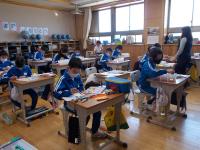 (自画像を描いている学年は鏡で自分の顔を見ているので、一部マスクを外している児童がいました。)