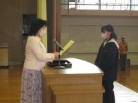 はじめに、先週の避難訓練に引き続き、今日も命を守るための学習であることを話しました。そして、6年生に「家庭の交通安全推進員」の委嘱状を交付しました。