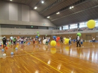 子どもたちは、ダンスや風船遊び、バルーン遊び、リレーなどに楽しく参加することができました。また、他校の友だちとも交流することができました。