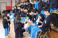 6年生に楽しんでもらえるようにと,各学年が工夫ををこらし,6年生と一緒にゲームをしたり替え歌を発表したりしました。