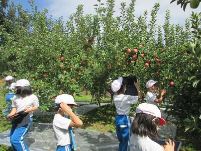 2021年9月29日 13時32分3年生が、特別非常勤講師の先生のリンゴ畑に出向き、湯野のリンゴ作りについて学んできました。